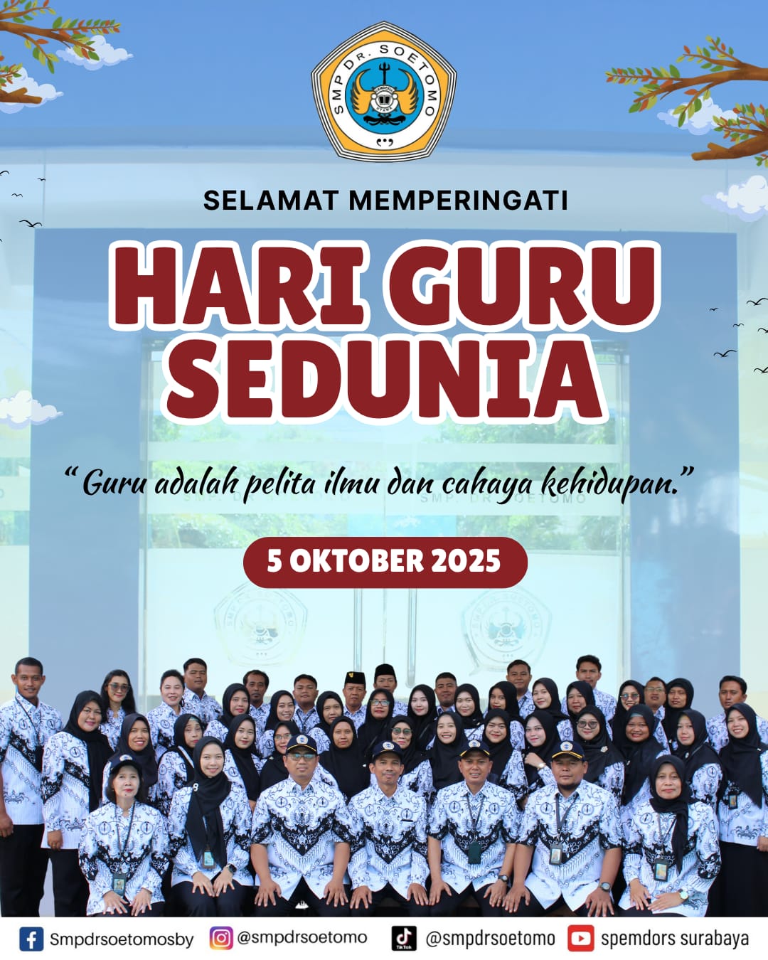 Assalamu'laikum Wr. Wb. Salam Sejahtera Om Swastiastu Namo Buddhaya Salam Kebajikan Kepada seluruh siswa, orang tua, dan stakeholder sekolah kami. Di SMP DR. SOETOMO, kami membanggakan komitmen kami untuk menyediakan lingkungan pendidikan yang berimtaq, disiplin dan berkarakter. Untuk mendukung program tersebut harus ada kerjasama yang baik antar stakeholder, mulai dari orangtua, sekolah, dan masyarakat serta pemangku kepentingan. Dengan kerjasama yang baik akan tercapai pendidikan sesuai yang kita cita-citakan. Pendidikan memang maha penting untuk meningkatkan kualitas hidup murid nantinya. Demikian, sambutan singkat kami, atas perhatian dan kerjasamanya kami ucapkan terima kasih. Hormat kami, Kepala Sekolah, Ari Afadianto, ST.