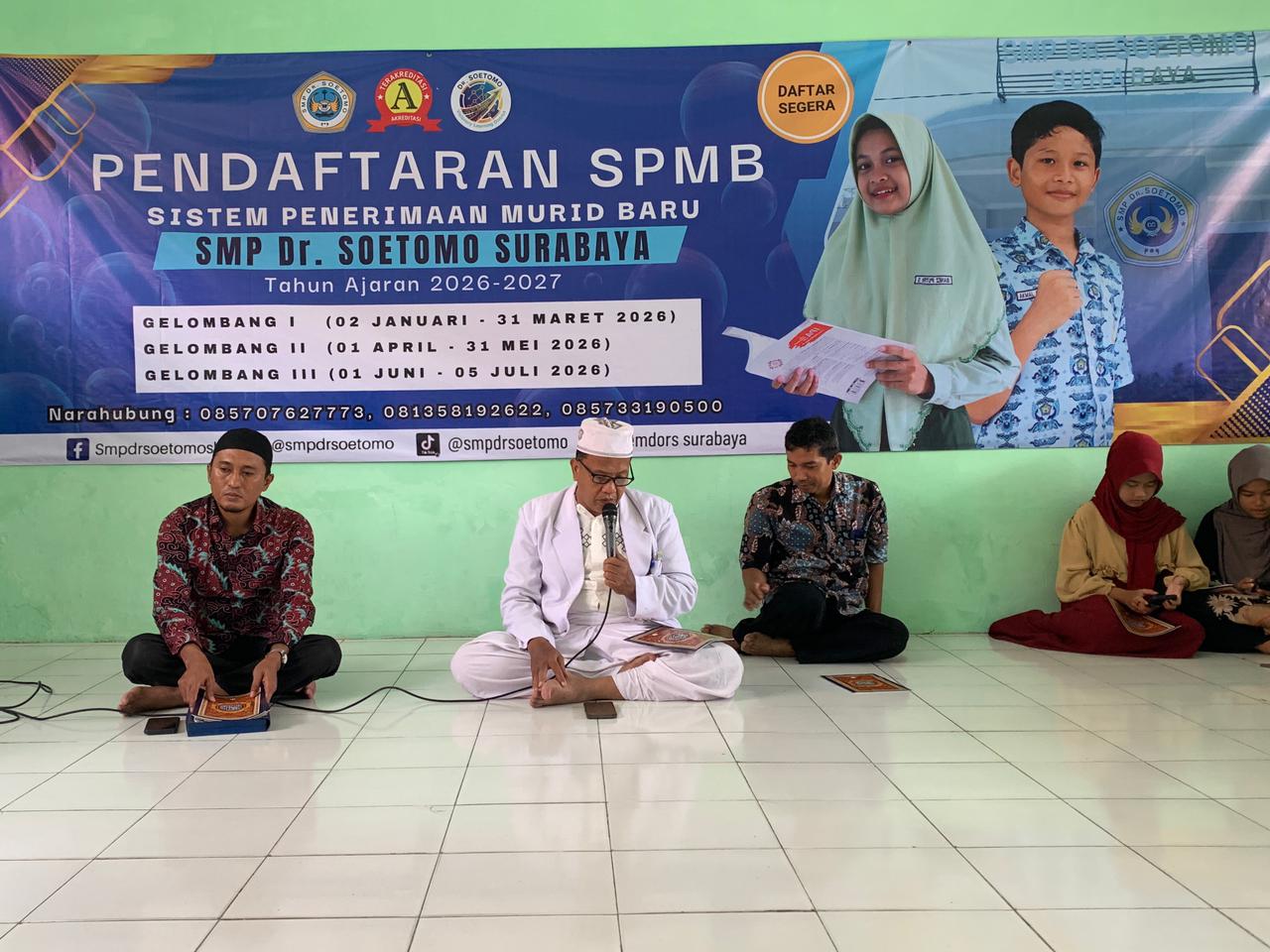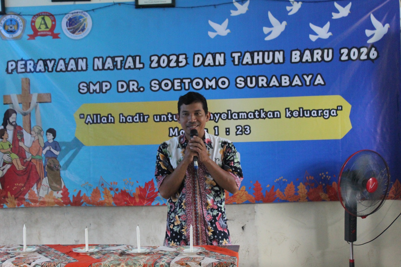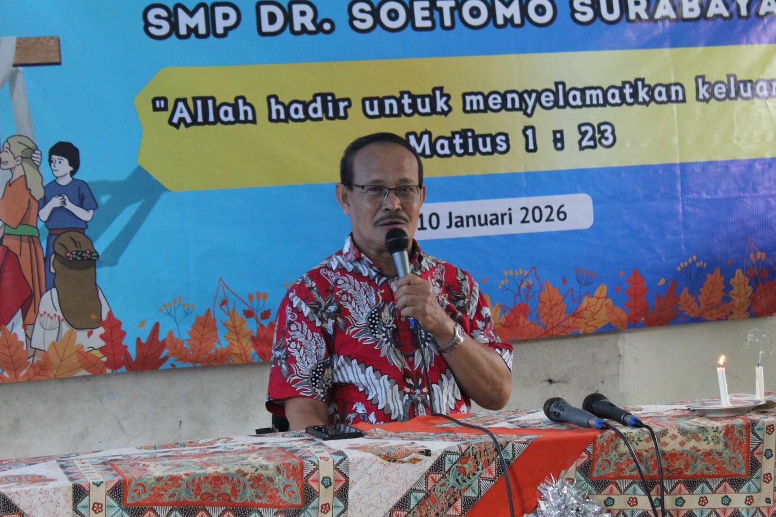 Assalamu'laikum Wr. Wb. Salam Sejahtera Om Swastiastu Namo Buddhaya Salam Kebajikan Kepada seluruh siswa, orang tua, dan stakeholder sekolah kami. Di SMP DR. SOETOMO, kami membanggakan komitmen kami untuk menyediakan lingkungan pendidikan yang berimtaq, disiplin dan berkarakter. Untuk mendukung program tersebut harus ada kerjasama yang baik antar stakeholder, mulai dari orangtua, sekolah, dan masyarakat serta pemangku kepentingan. Dengan kerjasama yang baik akan tercapai pendidikan sesuai yang kita cita-citakan. Pendidikan memang maha penting untuk meningkatkan kualitas hidup murid nantinya. Demikian, sambutan singkat kami, atas perhatian dan kerjasamanya kami ucapkan terima kasih. Hormat kami, Kepala Sekolah, Ari Afadianto, ST.